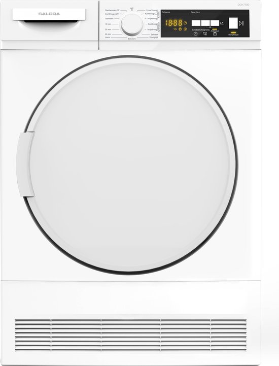 De Salora DCH7100 condensdroger is een prima keuze voor wie een energiezuinige en vrijstaande droger zoekt. Deze droger kan tot 7 kg wasgoed aan, waardoor hij ideaal is voor gezinnen of voor wie veel wasgoed te drogen heeft. Bovendien heeft deze droger 15 droogprogramma's, zodat je de droogcyclus aan je eigen behoeften kunt aanpassen. Deze condensdroger wordt geleverd zonder waterafvoerslang, maar die is optioneel verkrijgbaar.