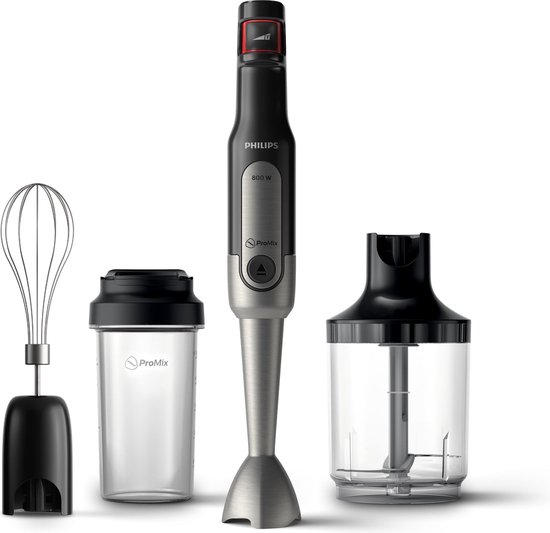 Deze 5-in-1 set bevat een garde, hakker, maatbeker, melkopschuimer, en de staafmixer zelf. Dus wat je ook aan het maken bent, met deze staafmixer ben je gedekt.
