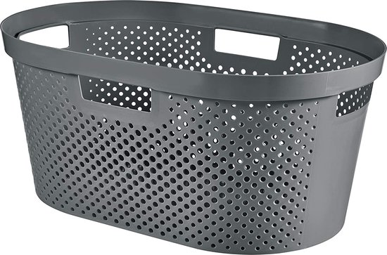 Onze Curver Infinity wasmand stippen is de perfecte manier om je wasgoed georganiseerd en opgeruimd te houden. Deze stijlvolle mand is gemaakt van 100% gerecycled donkergrijs materiaal en heeft een stippenontwerp dat zeker bij elke wooninrichting past. De mand heeft een inhoud van 40 liter, waardoor hij ideaal is voor grotere ladingen wasgoed. De handvatten aan de zijkanten maken hem gemakkelijk te dragen, zelfs als hij vol is. Bovendien is de mand inklapbaar om hem gemakkelijk op te bergen als hij niet gebruikt wordt.