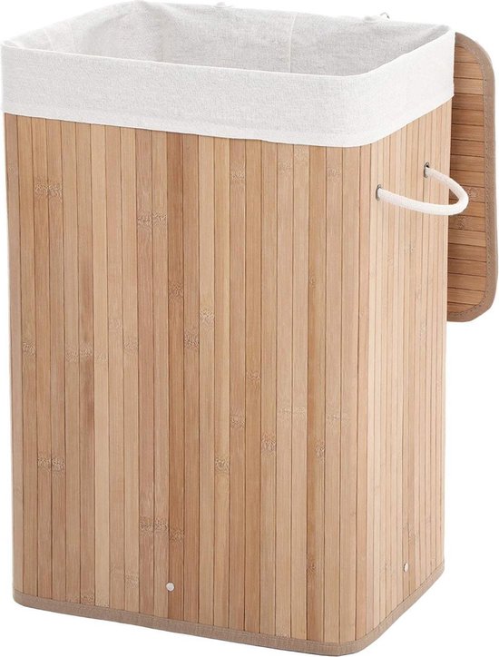 Zoek je een elegante manier om je wasgoed op te bergen? Deze bamboe wasmand is perfect voor de klus! Het natuurlijke bamboehout geeft hem een zachte, mooie uitstraling, terwijl de inhoud van 72 liter ervoor zorgt dat je een hele berg wasgoed schoon kunt opbergen. Plus, de wasbare katoenen zak maakt het gemakkelijk om de mand schoon te houden.